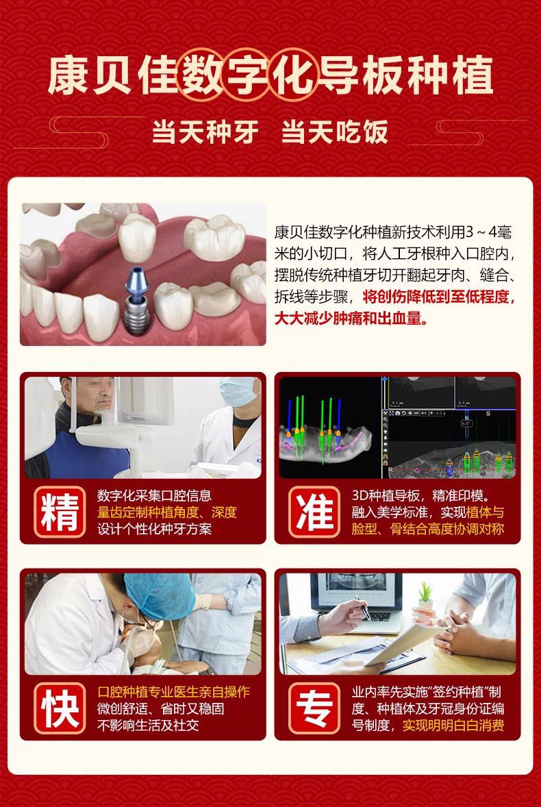 康贝佳口腔是国内首批引进数字化种植系统的医疗机构,拥有全套的数字化导板设计、输出端口,包括专业种植团队和设备都非常的专业完善,数字化种植牙的任何环节均可院内完成。
